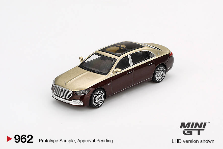 Mini GT 1/64 Mercedes-Maybach S680 Gold / Dark Red Metallic – Diecast Model Araba